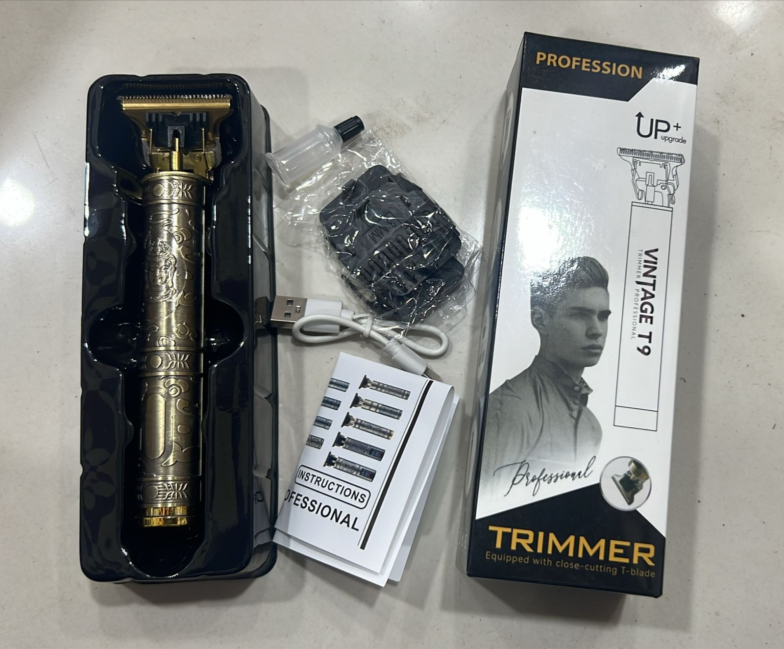 Designed for barbers and home users alike, the T9 trimmer delivers exceptional control for detailing, edging, and full haircuts. Its ergonomic grip makes it easy to handle, while the USB rechargeable battery provides long-lasting cordless performance — ideal for use at home or on the go.