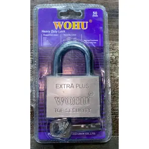 WOHU Heavy Duty Lock For maximum protection of outdoor applications, with long lasting security and durability.available in diferent sizes 30mm 40mm 50 mm 60 mmHow to choose a Padlock; Choose the lock that meets your requirement by using WORU Padlock grading system. Determine the 3 Key Security Features Levei oi Protecuon you require.1. Rust: expose to water2. Prying: pulling or hammer blows3. Sawing Minimum Protection Good Protection Excellent Protection Maximum Protection